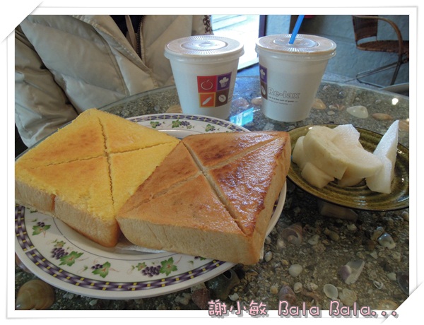 厚片吐司與奶茶還有水果